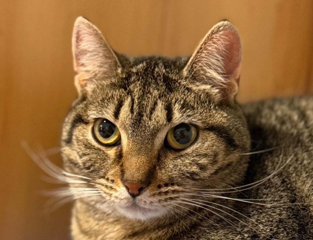 Hilma är en mycket kompakt och rund liten tiger. Hon beräknas vara född 2024. Hon är fortfarande lite skygg mot människor, men samtidigt väldigt nyfiken på vad tvåbenta varelser sysslar med och låter sig då och då klappas lite om man närmar sig på rätt sätt! Hilma hoppas att det redan finns en trevlig kattkompis i det nya hemmet, eller att någon bekant från Katthuset kan följa med! Hon kommer bra överens med alla katter som bor i samma utrymme. Hon älskar att sova, både ensam och tillsammans med andra.