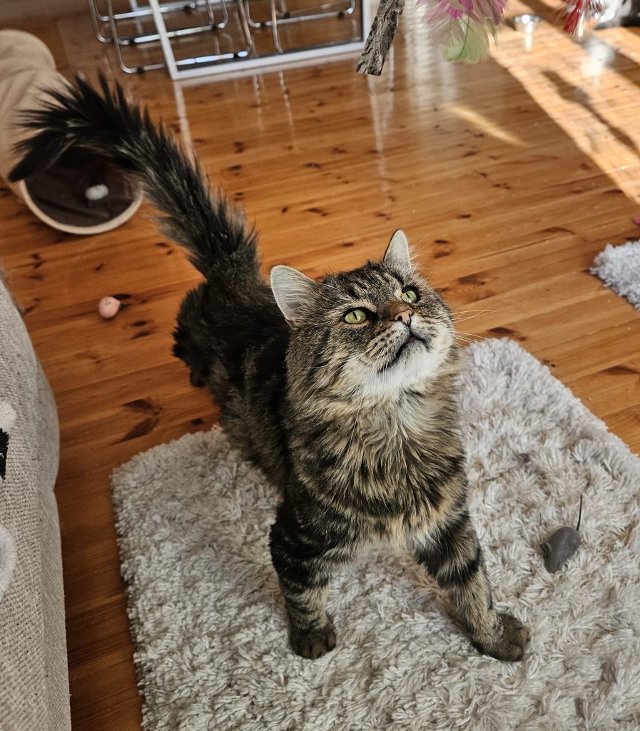 Mörri on iäkkäämpi herrasmies, joka arvostaa rauhallisuutta, mutta erityisesti seuraa, silityksiä ja rapsutuksia. Mörri viihtyisi hyvinkin ainoana kissana. Herttaisempaa mörrimöykkyä saa hakemalla hakea